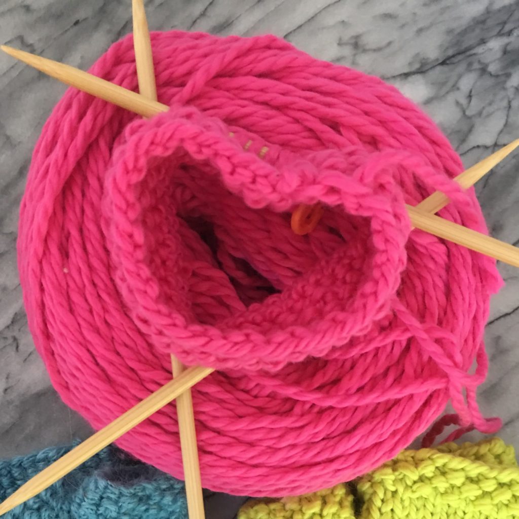 The first two colorways for these wrist cuff length mittens are a beautifully bright lemongrass and a vibrant pink lotus.